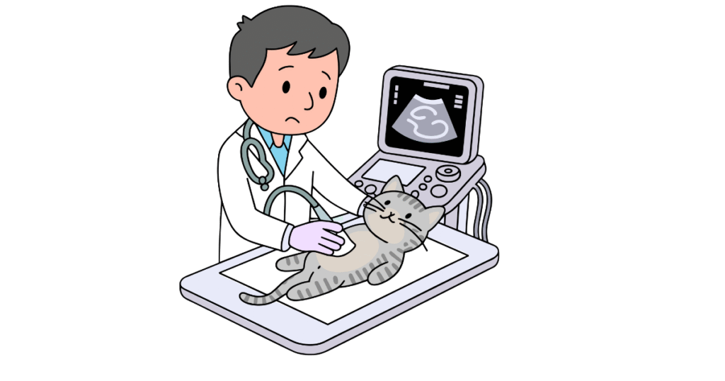 早朝に病院へ駆け込み、診察・尿検査・エコー(超音波)を実施してもらいました。